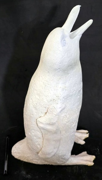 450mm tall (+/-) hollow white cement cast penguin blank, ready for you to use a s a blank canvas for your creativity!